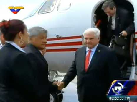 El presidente de Panamá a su llegada al Aeropuerto Simón Bolívar. Credito: Aporrea.org. 8 julio 2013