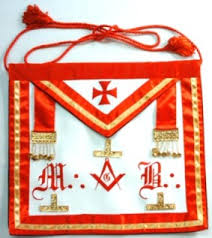 En el rito escocés el mandil de los maestros está bordado de rojo, color del martirio de San Juan o de Hiram.